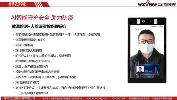 以上就是關(guān)于人臉識別門禁測溫系統(tǒng)如何幫助社區(qū)疫情防控的相關(guān)介紹,希望能夠?qū)Υ蠹矣兴鶐椭?。深圳市五洲群?chuàng)科技有限公司作為國內(nèi)一家專業(yè)的人員識別物品標(biāo)識解決方案供應(yīng)商,企業(yè)一直致力于物聯(lián)網(wǎng)與人工智能技術(shù)的研發(fā)創(chuàng)新,為各行業(yè)領(lǐng)域提供更好的人臉識別解決方案,以專業(yè)技術(shù)和真誠服務(wù)助力企業(yè)的信息化發(fā)展。